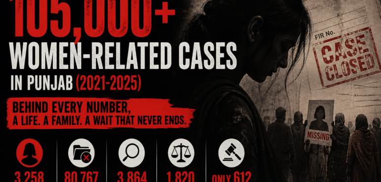 A deeply troubling picture has emerged from Punjab, where newly submitted data to the Lahore High Court reveals the scale of women-related cases between 2021 and 2025. During this period, 105,571 cases were registered—an average of more than 21,000 each year, nearly 1,750 every month, and around 60 cases every single day.