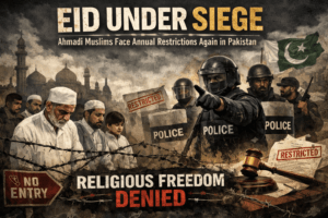 Every year, as Eid al-Fitr approaches, a familiar pattern unfolds in Pakistan. While millions prepare for prayer and celebration, the Ahmadiyya Muslim Community braces for restrictions, uncertainty, and, too often, outright denial of their right to worship. This year was no different. In several districts of Punjab, Ahmadis were once again